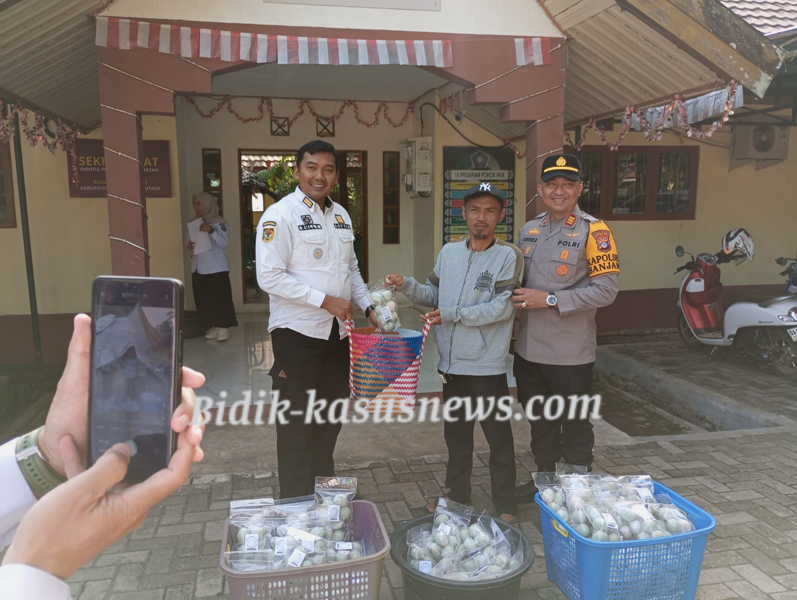 Kapolsek Banjang AKP Robby Ansharie Bahasuan dalam kesempatan itu juga turut berpartisipasi secara pribadi dengan menyumbangkan 100 butir telur tambahan bagi anak-anak penderita stunting.