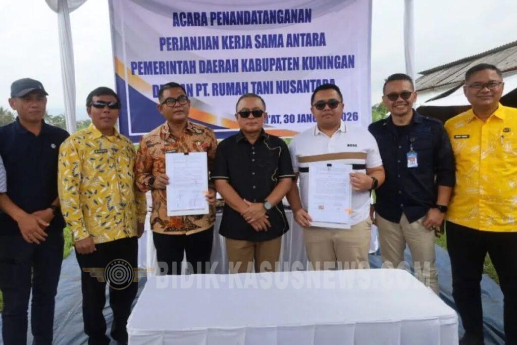 Kuningan Bidik-kasusnews.com,.Pemerintah Kabupaten Kuningan, Jawa Barat, mengoptimalkan pengelolaan aset lahan milik daerah untuk mendukung ketahanan pangan sekaligus meningkatkan pendapatan asli daerah (PAD) melalui kerja sama dengan PT Rumah Tani Nusantara.