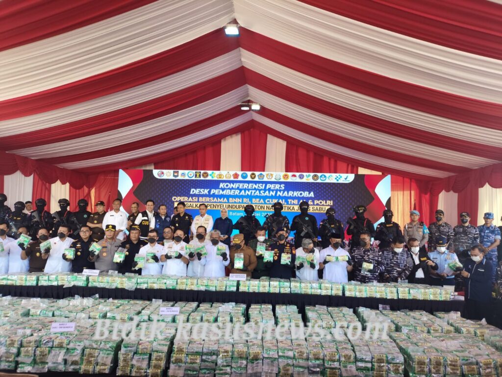 Batam, Bidik-kasusnews.com — Sejarah baru dalam pemberantasan narkoba tercipta. Badan Narkotika Nasional Republik Indonesia (BNN RI) bersama Direktorat Jenderal Bea dan Cukai, TNI Angkatan Laut, serta Polda Kepulauan Riau berhasil menggagalkan penyelundupan sabu terbesar di Indonesia dengan total barang bukti mencapai 2 ton atau 2.000.000 gram.(26/5/2025)