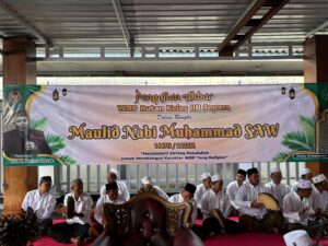 Jepara – Suasana Rutan Kelas IIB Jepara pada Kamis (18/9/2025) tampak berbeda dari biasanya. Aula yang biasanya digunakan untuk berbagai kegiatan kini dipenuhi lantunan shalawat yang merdu, diiringi rebana warga binaan pemasyarakatan (WBP). Hari itu, seluruh petugas dan WBP larut dalam peringatan Maulid Nabi Muhammad SAW yang dikemas dalam Pengajian Akbar.