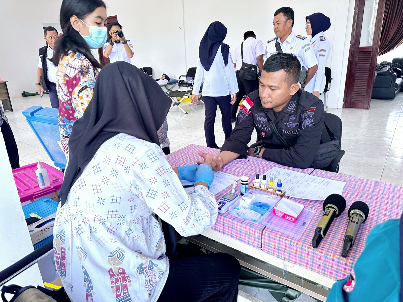 Senin-15-September-2025, Personel Batalyon C Pelopor kabupaten Sintang Kalbar Satbrimob Polda Kalbar turut berpartisipasi dalam kegiatan Donor Darah yang dilaksanakan di Bandara Tebelian Sintang, dalam rangka memperingati Hari Perhubungan Nasional.