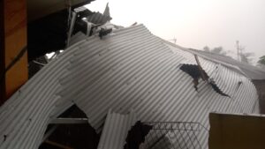 ‎Puluhan rumah warga juga mengalami kerusakan. Atap yang beterbangan menimpa sejumlah bangunan di sekitarnya.