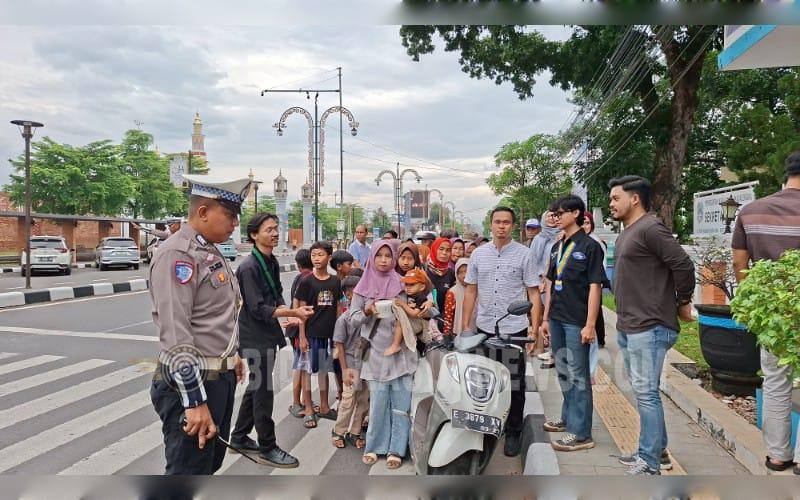 Polisi dan Mahasiswa di Majalengka Bersatu Berbagi Takjil untuk Pengendara