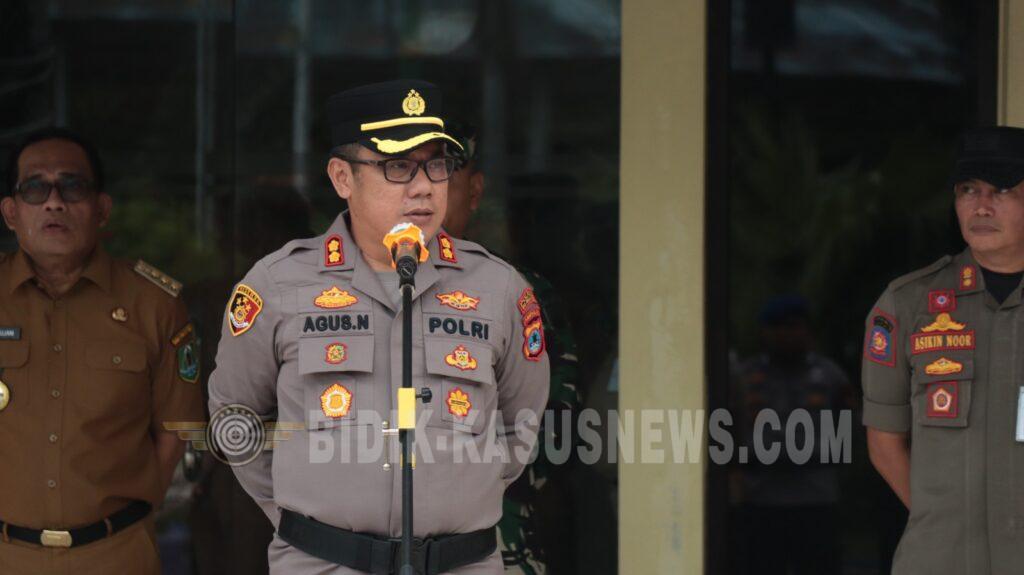 Kegiatan pengamanan dipimpin langsung oleh Kapolres Hulu Sungai Utara AKBP Agus Nuryanto, S.I.K., M.Si, dengan melibatkan unsur Forkopimda, TNI, Polri, serta instansi terkait. Sejumlah pejabat daerah turut hadir dan memantau jalannya kegiatan, di antaranya Bupati HSU H. Sahrujani, Wakil Bupati HSU Hero Setiawan, Ketua DPRD HSU H. Fadilah, S.M., Dandim 1001 HSU-BLG Letkol Inf. Endra Retno Erowanto, S.Sos., M.I.P., serta jajaran pimpinan Polres HSU dan instansi vertikal lainnya.