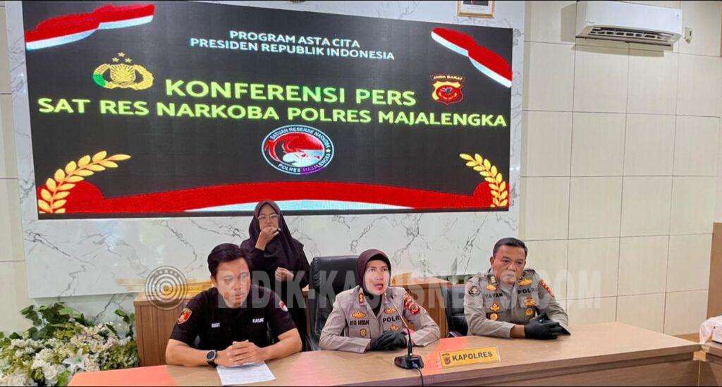 Pengungkapan tersebut disampaikan langsung oleh Kapolres Majalengka AKBP Rita Suwadi dalam konferensi pers yang digelar di Aula Sindangkasih Mapolres, Kamis (16/4/2026). Ia didampingi Kasat Narkoba AKP Sigit Purnomo dan Kasi Humas AKP Yayan Suripna.