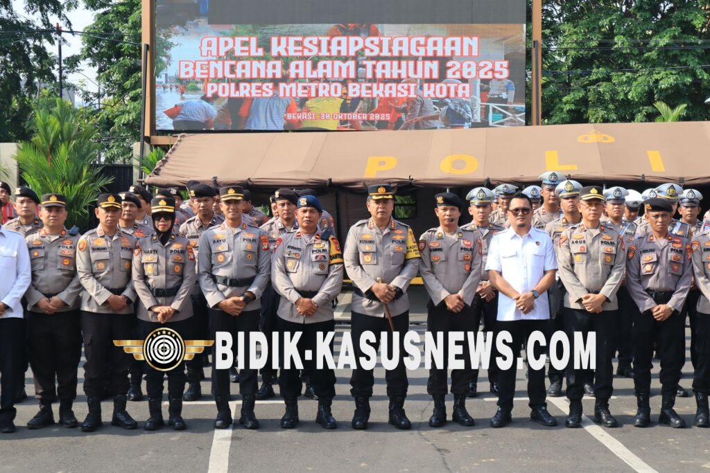 Bekasi Kota, Bidik-kasusnews.com – Polres Metro Bekasi Kota menggelar Apel Kesiapsiagaan Bencana Alam Tahun 2025 di halaman Mapolres pada Kamis (30/10/2025). Apel ini bertujuan untuk mengecek kesiapan personel, sarana prasarana, serta keterlibatan unsur terkait dalam menghadapi potensi bencana alam.