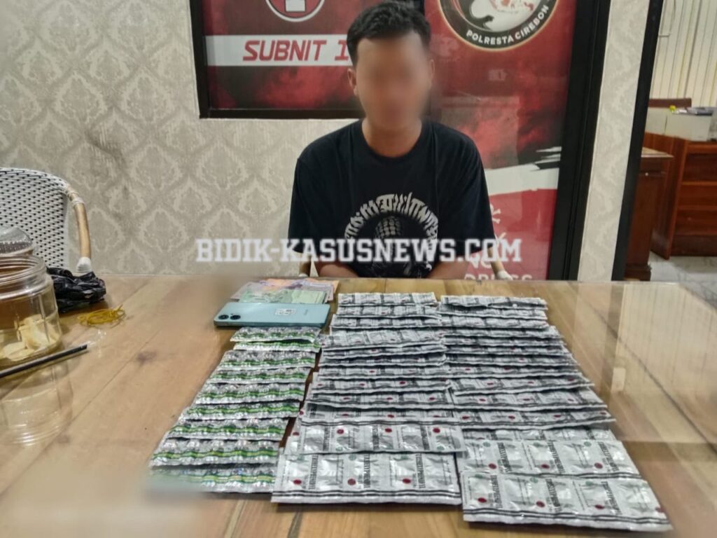 Cirebon Bidik-kasusnews.com,.Petugas Polresta Cirebon mengamankan pengedar obat keras terbatas (OKT) tanpa izin resmi berinisial HLS (24). Pemuda yang berasal dari Kecamatan Gebang, Kabupaten Cirebon, tersebut ditangkap di wilayah Kecamatan Pabedilan, Kabupaten Cirebon, pada Senin (13/10/2025) kira-kira pukul 7.00 WIB.