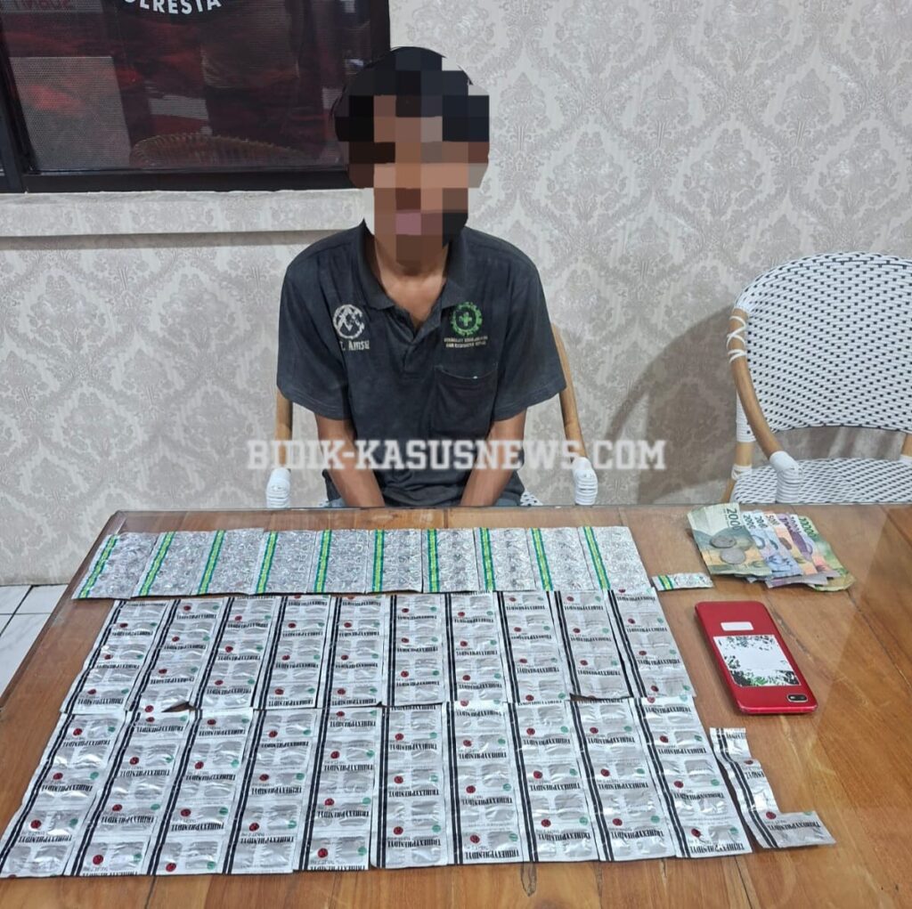 Cirebon Bidik-kasusnews.com,.Petugas Polresta Cirebon mengamankan pengedar obat keras terbatas (OKT) tanpa izin resmi berinisial ES (28). Pelaku yang tercatat sebagai warga Kecamatan Jamblang, Kabupaten Cirebon, tersebut ditangkap di wilayah Kecamatan Kedawung, Kabupaten Cirebon, pada Senin (13/10/2025) kira-kira pukul 18.00 WIB.