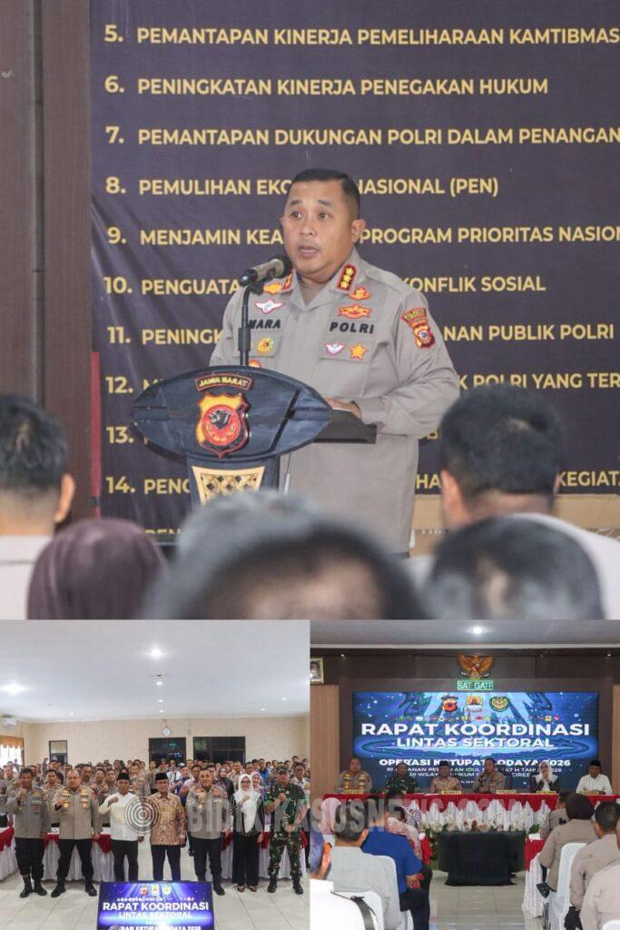 Kapolresta Cirebon Kombes Pol Imara Utama dalam sambutannya menyampaikan bahwa rapat koordinasi tersebut bertujuan untuk membahas kesiapan pengamanan arus mudik dan arus balik Lebaran Tahun 2026. Ia menegaskan pentingnya evaluasi dari pelaksanaan pengamanan tahun sebelumnya agar berbagai kendala dapat diantisipasi sejak dini.