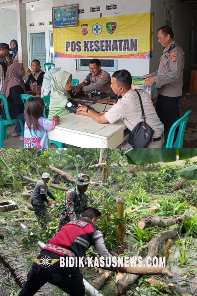 Dalam kegiatan tersebut juga turut dilaksanakan juga Bhakti Kesehatan Pengobatan Gratis dan kerja bhakti membersihkan yang terdampak angin puting beliung, yang di ikuti oleh Para Perwira, Bintara Polsek Plered Polresta Cirebon.