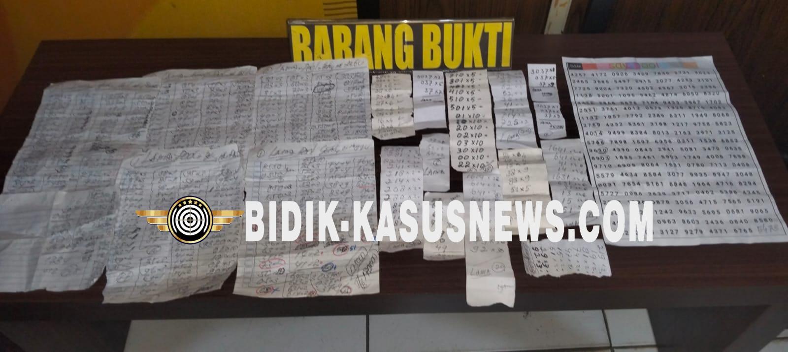 Selain mengamankan para pelaku, polisi juga menyita barang bukti tambahan berupa enam lembar kertas besar, 13 lembar kertas sobekan berisi rekapan angka, serta satu unit sepeda motor Yamaha Soul GT yang digunakan F sebagai sarana operasional.