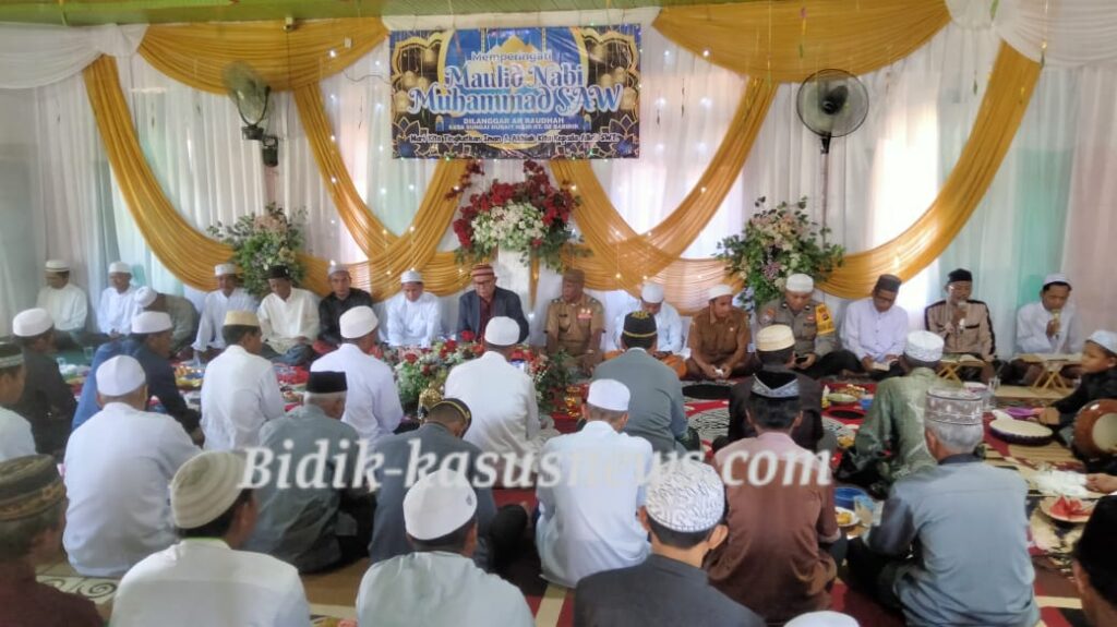 HSU | Bidik-kasusnews.com – Polsek Babirik bersama tokoh masyarakat dan warga menghadiri peringatan Maulid Nabi Muhammad SAW yang berlangsung di Mushola Ar Raudhah, Desa Sungai Durait Hilir, Kecamatan Babirik, Kabupaten Hulu Sungai Utara (HSU), Senin (22/9/2025) siang.