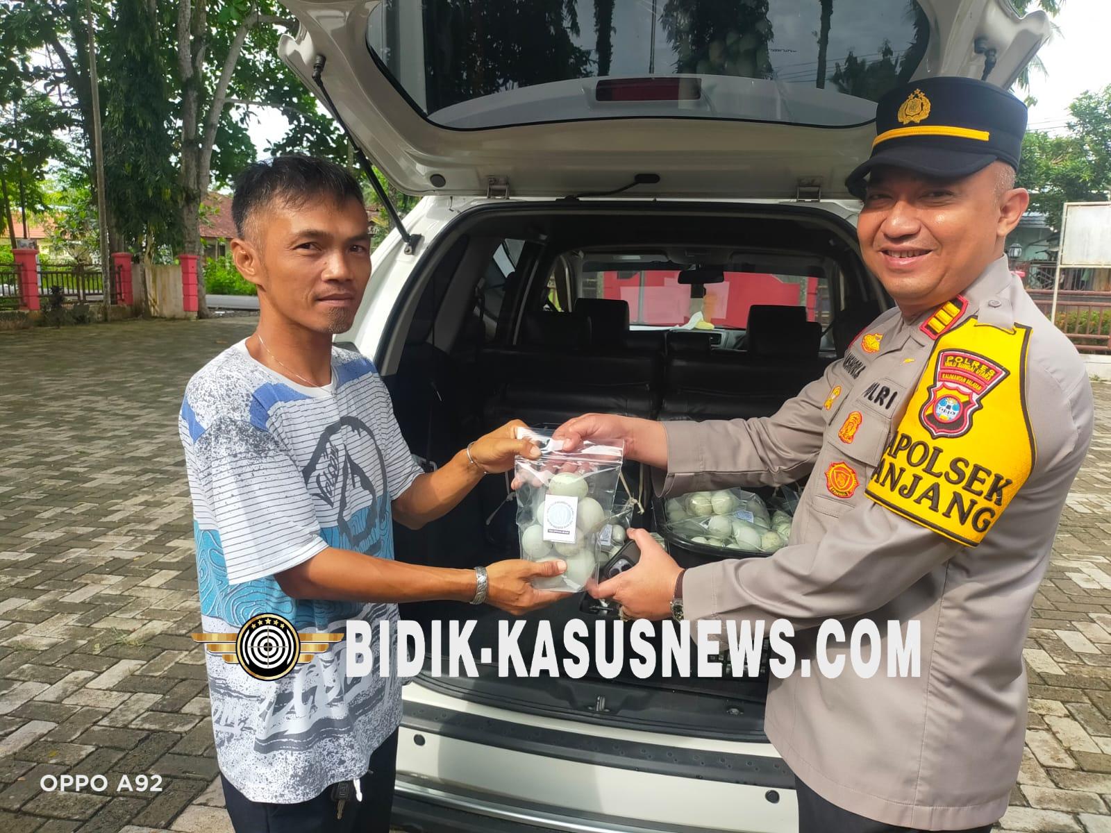 Kapolsek Banjang AKP Robby Ansharie Bahasuan juga turut berperan aktif dengan menyerahkan bantuan pribadi sebanyak 100 butir telur itik tahap kedua untuk anak-anak yang terindikasi stunting.