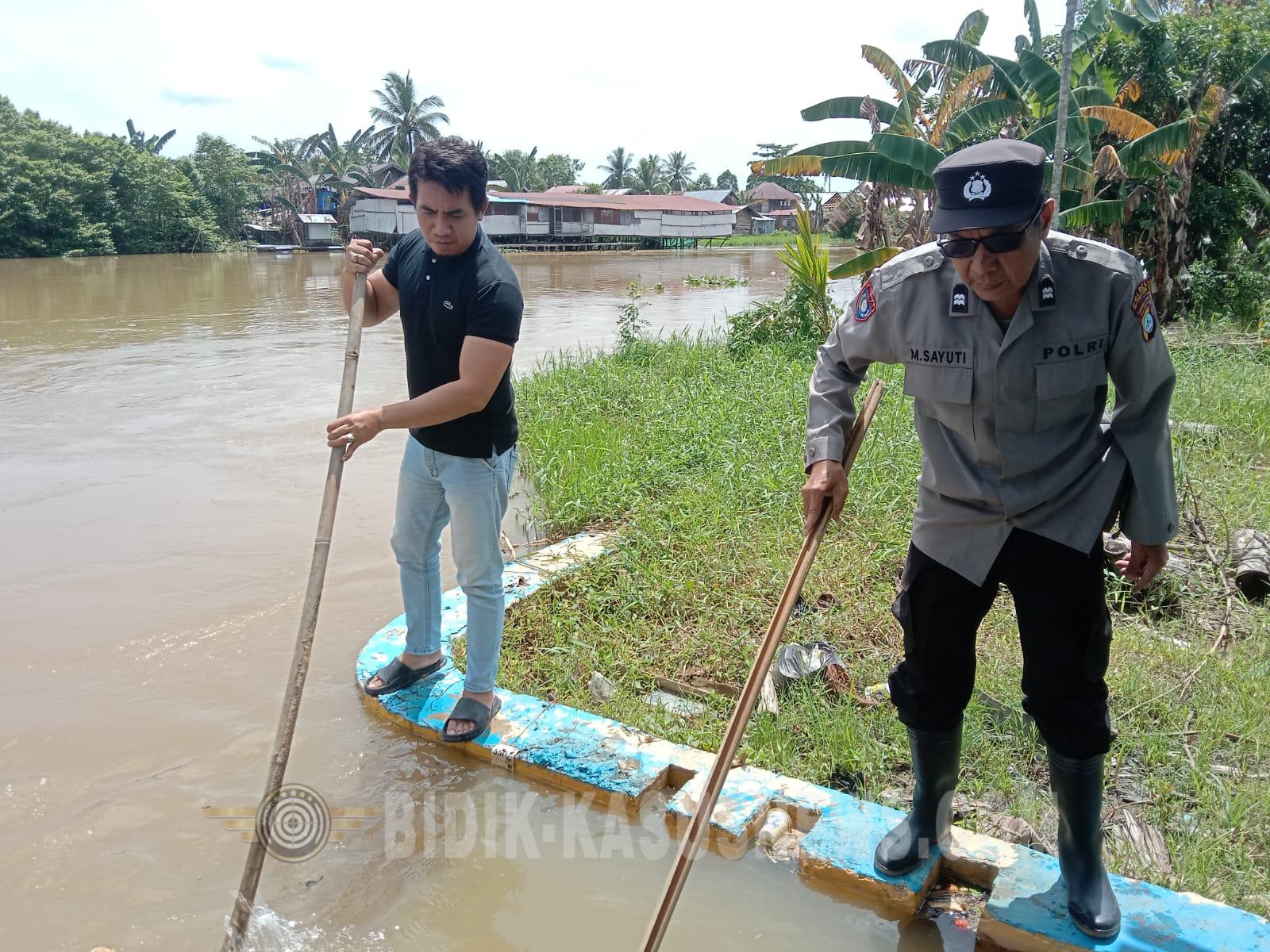 Debit Sungai Balangan Turun Tipis, Polsek Banjang Tetap Siaga Pantau Wilayah Terdampak Banjir