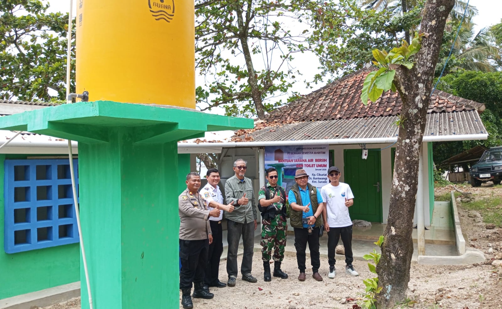 Selain bedah rumah, PT BSM juga membangun fasilitas air bersih berupa sumur bor, bak penampung, dan toilet untuk mushola di kawasan pesisir Pantai Minajaya, Kampung Ciburial, Desa Buniwangi.