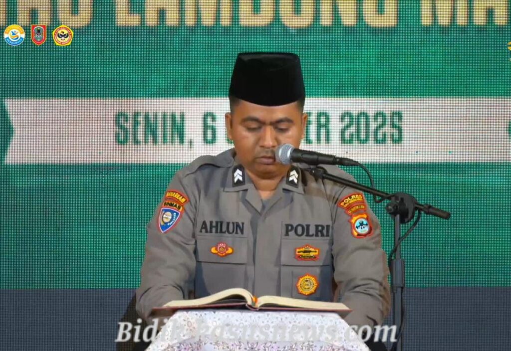 Banjarbaru, Bidik-kasusnews.com – Suasana khidmat menyelimuti Auditorium Universitas Lambung Mangkurat (ULM) Banjarbaru saat pembukaan Musabaqah Tilawatil Qur’an Mahasiswa Nasional (MTQMN) XVIII pada Senin (6/10). Dalam acara bergengsi tingkat nasional ini, personel dari Sat Binmas Polres Hulu Sungai Utara (HSU), Briptu Muhammad Ahlun Nazhar, S.Pd., M.M., dipercaya menjadi Qori pembuka yang melantunkan ayat suci Al-Qur’an.