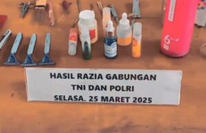 Barang lain yang berpotensi membahayakan: tali/kabel (3 buah), amplas (2 lembar), korek api, resleting, tali kolor, tutup gelas stainless, serta 3 tusuk kayu kecil.