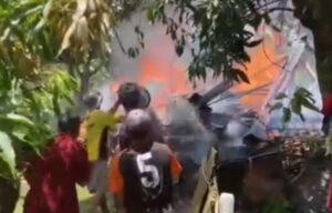 ‎Aparat desa bersama Babinsa dan Bhabinkamtibmas kemudian datang untuk membantu pemadaman dan mengamankan area agar api tidak merembet ke rumah lain.