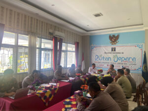 Rapat tersebut dipimpin langsung oleh Kepala Kesatuan Pengamanan Rutan (Ka. KPR), Benny Apridona, dan dihadiri oleh jajaran struktural Rutan serta perwakilan dari Polres Jepara. Agenda utama yang dibahas adalah penyusunan poin-poin kerja sama lintas lembaga yang mencakup aspek pengamanan, deteksi dini gangguan kamtib, penanganan narkoba, serta kegiatan pembinaan hukum dan kesadaran hukum bagi warga binaan.