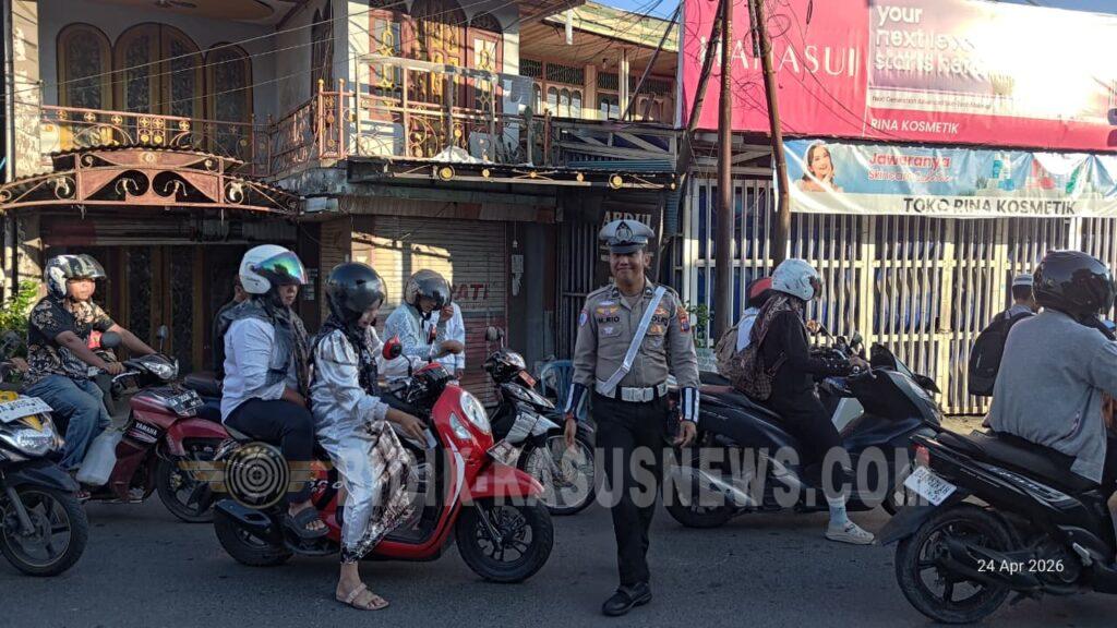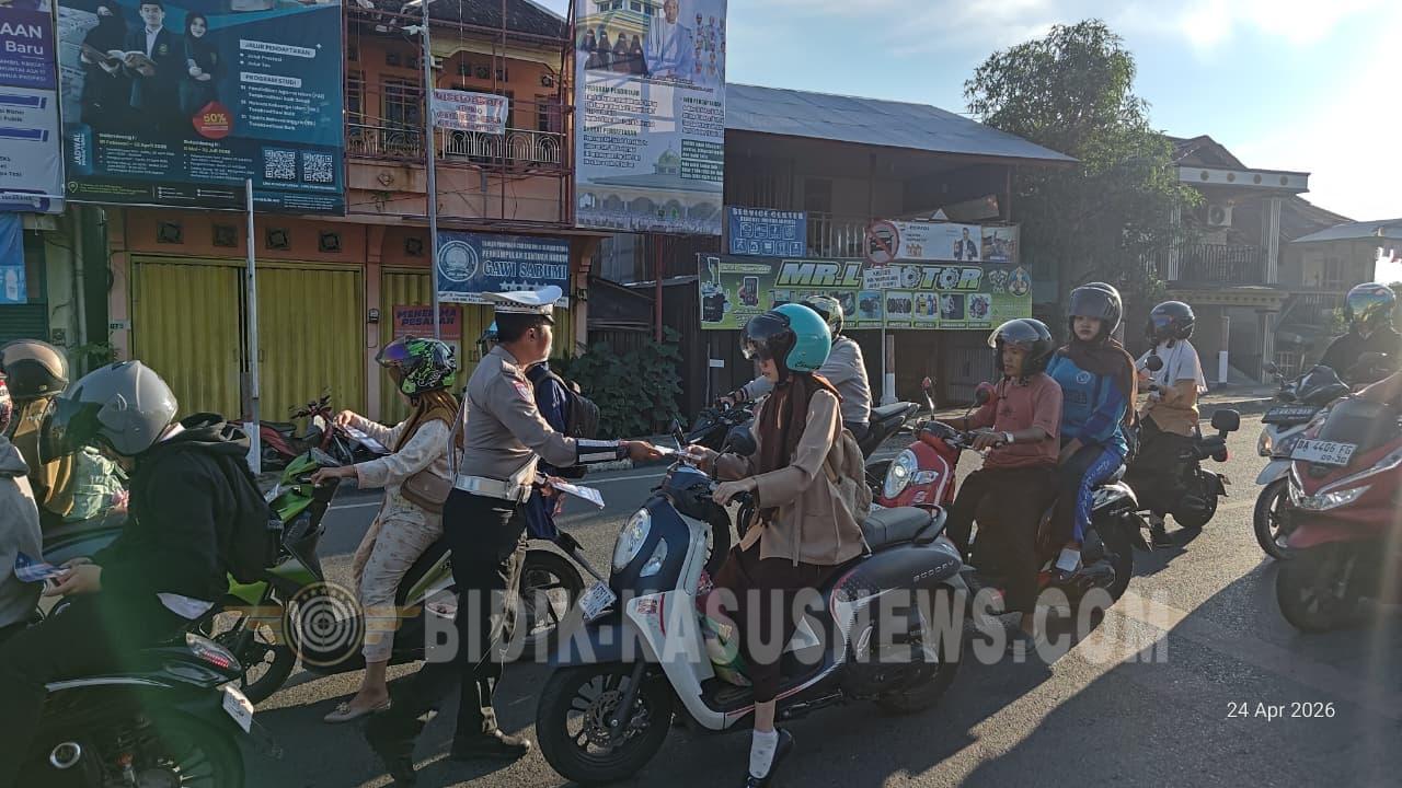HSU – BIDIK-KASUSNEWS.COM – Satuan Lalu Lintas (Sat Lantas) Polres Hulu Sungai Utara (HSU) terus mengintensifkan upaya pencegahan kecelakaan melalui edukasi langsung kepada masyarakat. Salah satunya dilakukan dengan membagikan brosur keselamatan berlalu lintas di kawasan Jalan Lambung Mangkurat, Kelurahan Paliwara, Kecamatan Amuntai Tengah, Jumat (24/4/2026).
