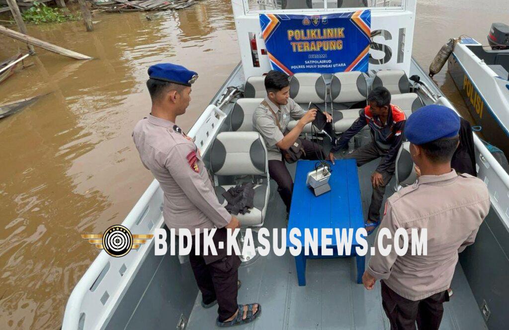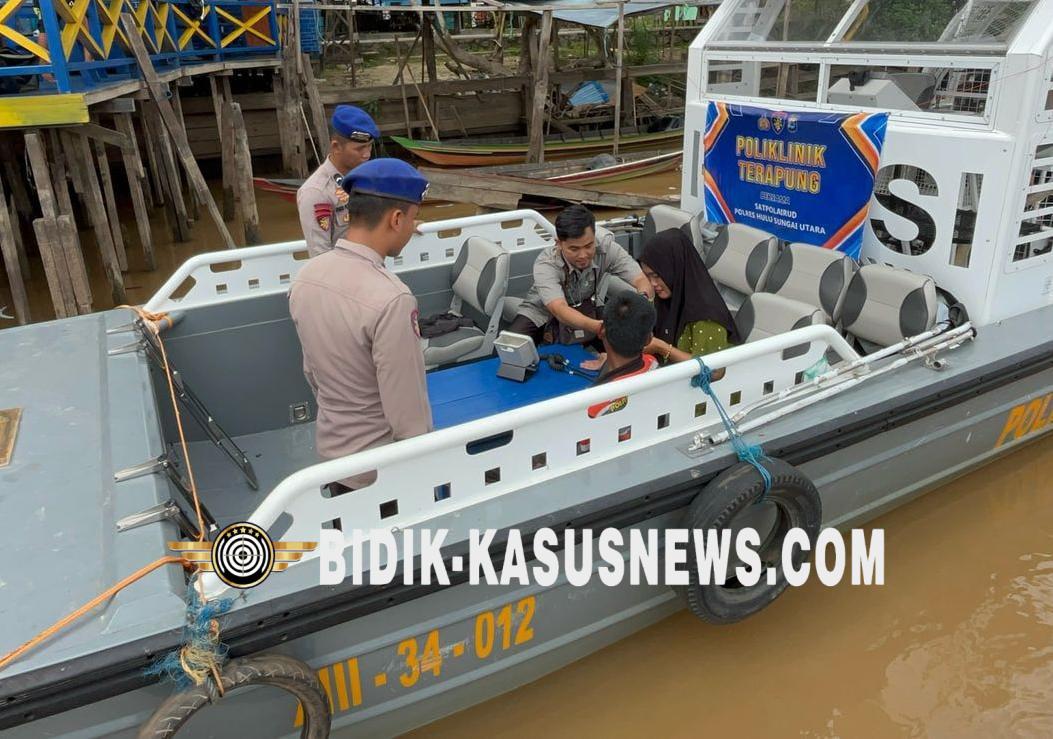 Sat Polairud Polres Hulu Sungai Utara Gelar Klinik Terapung di Desa Paminggir, Wujud Kepedulian Polri terhadap Kesehatan Warga Pesisir