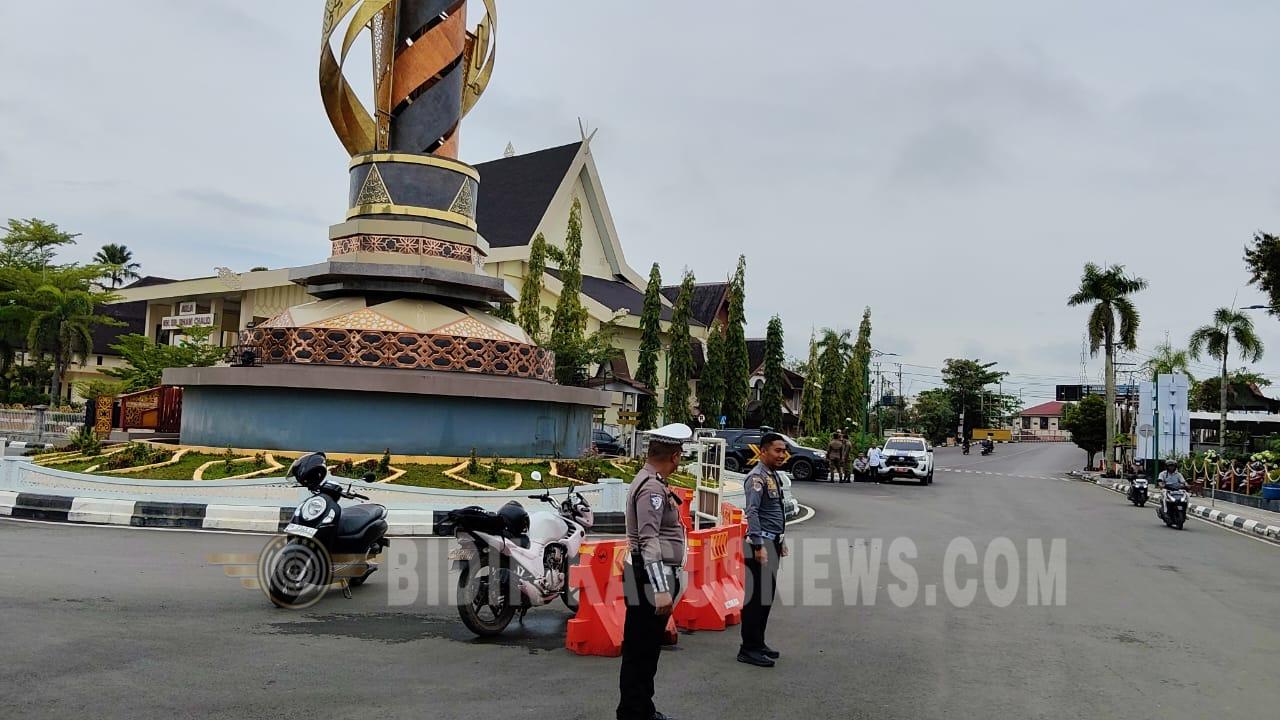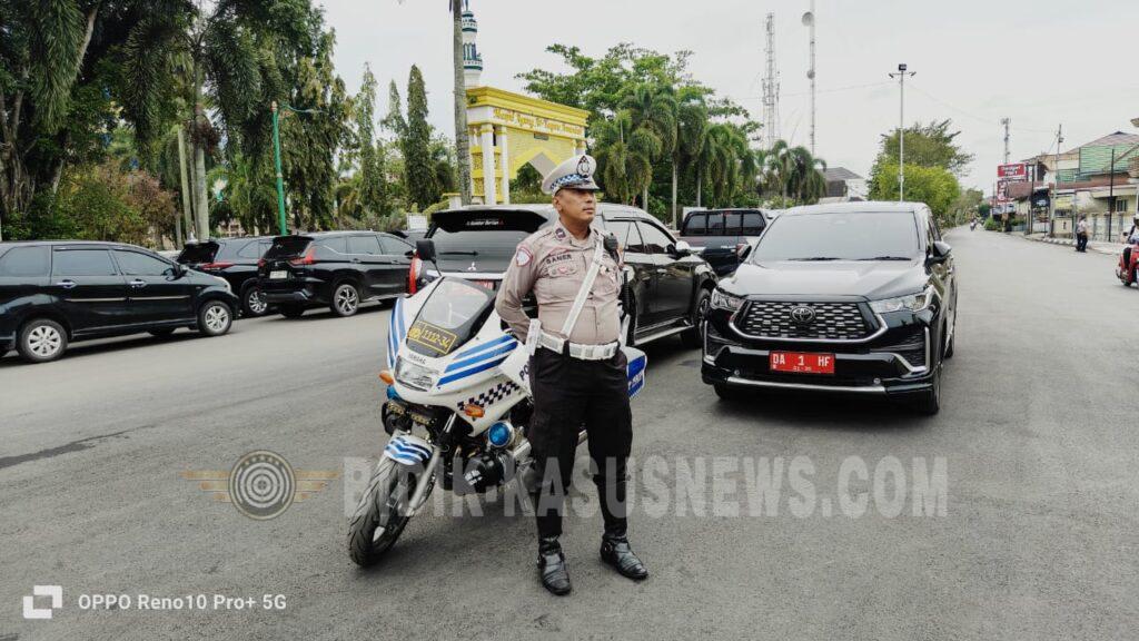 Pengamanan dimulai sejak pukul 08.00 Wita hingga kegiatan selesai, dengan fokus pengaturan di sepanjang Jalan Jenderal A. Yani Amuntai, khususnya di sekitar Aula Dr. KH. Idham Khalid yang menjadi lokasi agenda kunjungan.