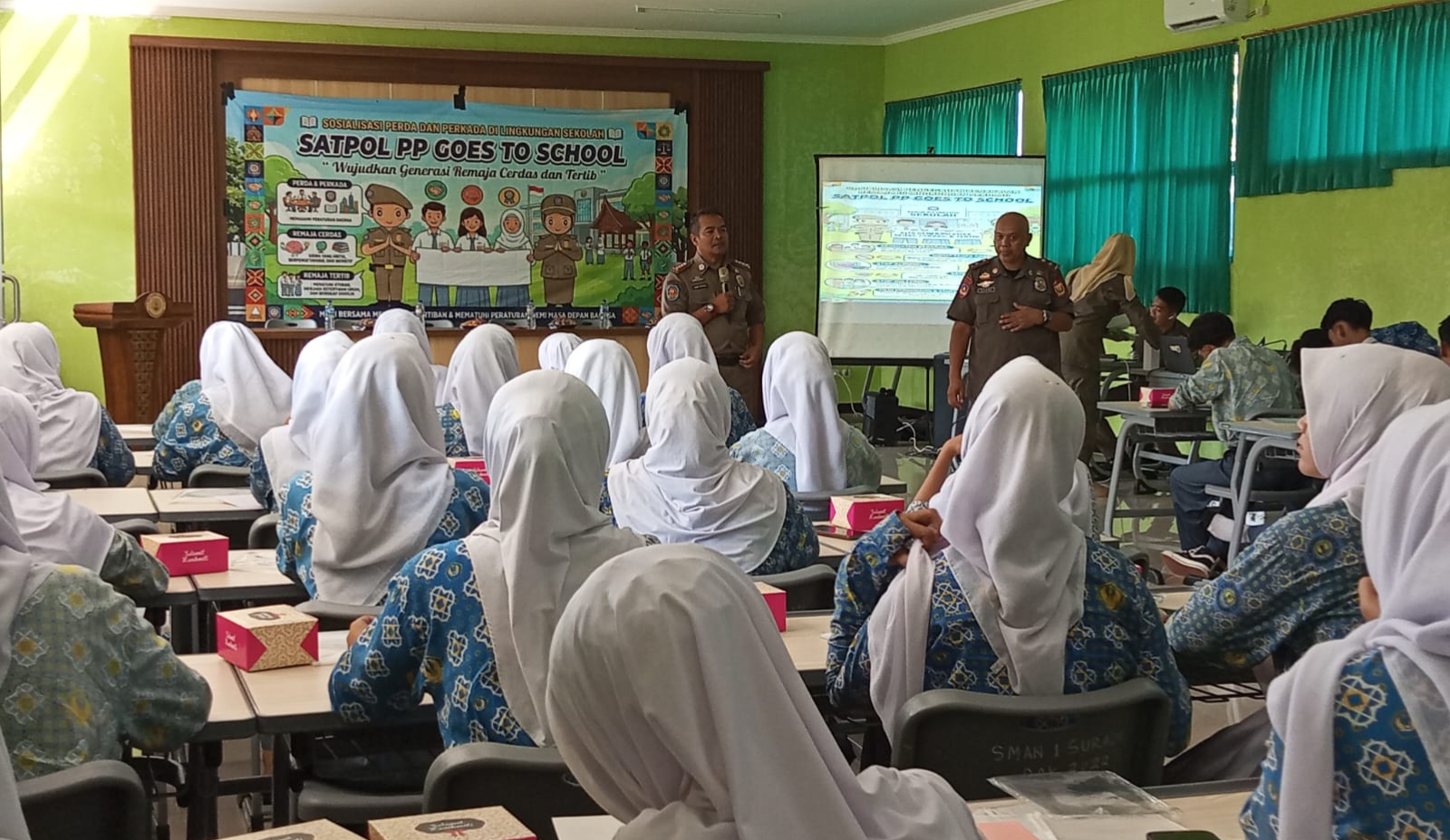 Kegiatan tersebut dihadiri langsung oleh Kasat Pol PP Kabupaten Sukabumi Deni Yudoyono bersama jajaran, Camat Surade Unang Suryana, unsur Forkopimcam, serta pihak sekolah. Ratusan siswa dan dewan guru tampak antusias mengikuti jalannya sosialisasi.