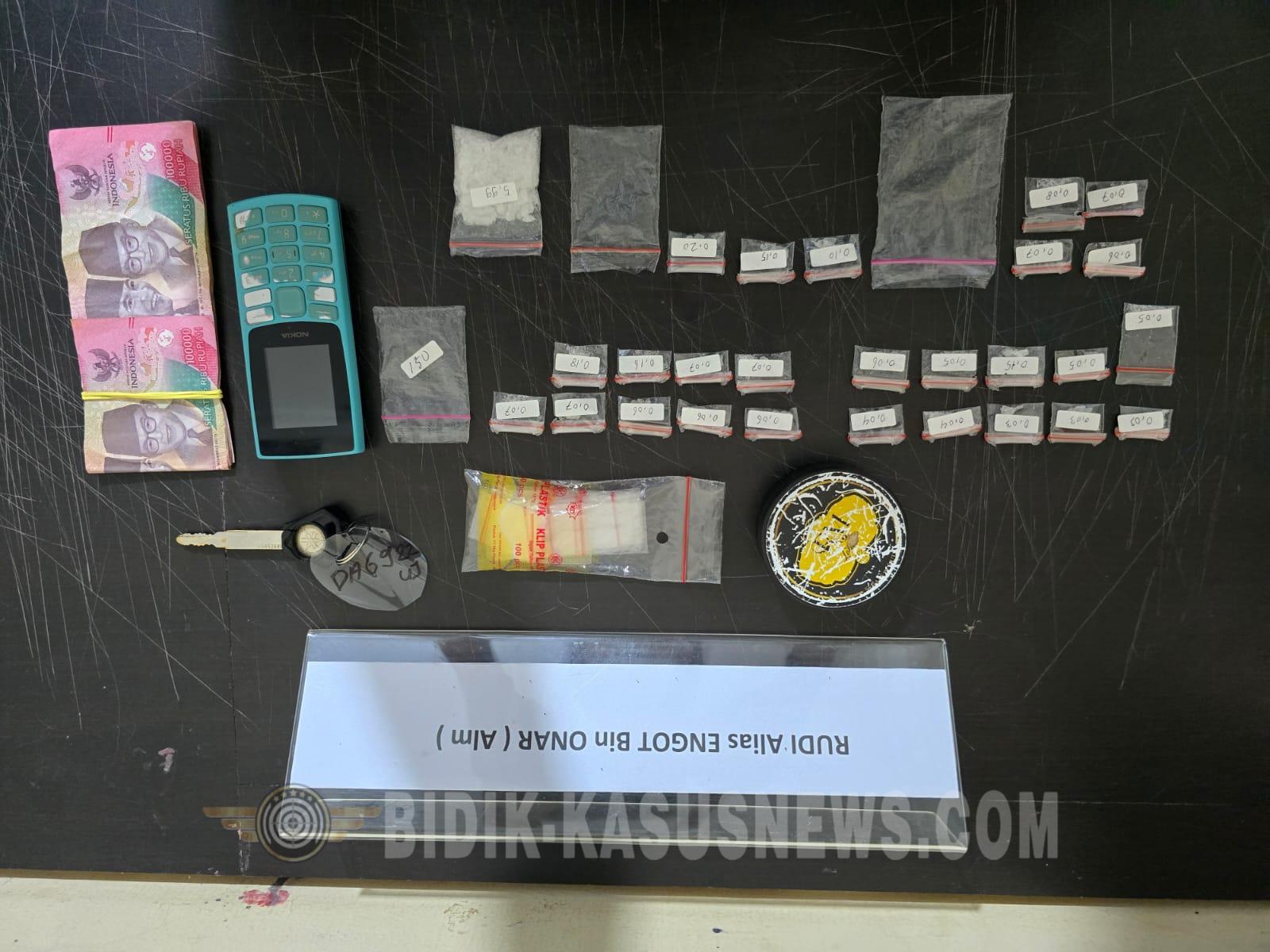 “Dari hasil penggeledahan awal, petugas menemukan 23 paket sabu yang disimpan dalam wadah kecil. Setelah dilakukan pengembangan dan penggeledahan di rumah tersangka, kembali ditemukan beberapa paket sabu lainnya,” jelasnya.