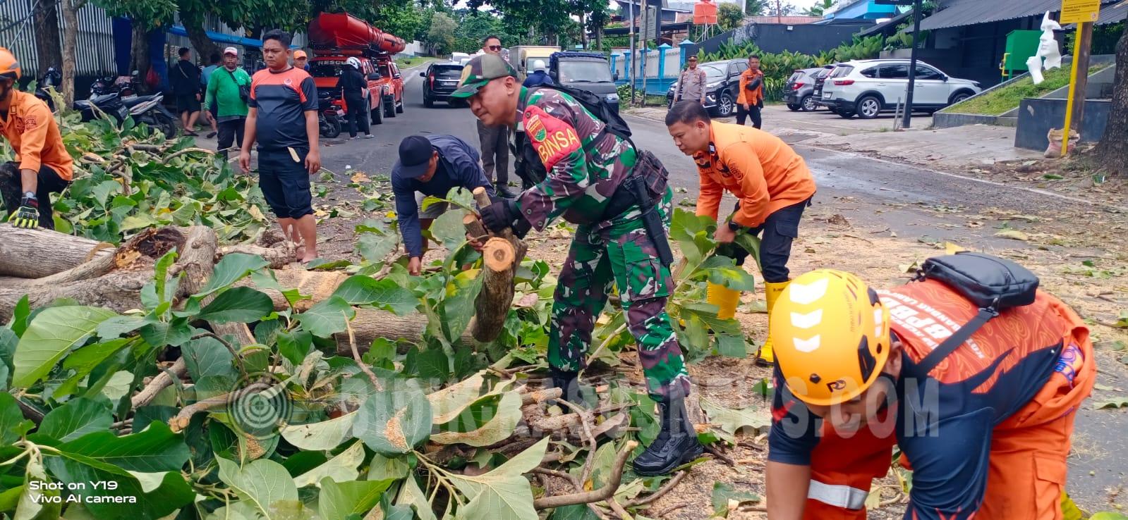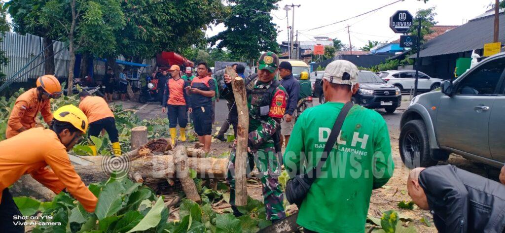 Bandar Lampung, Bidik-kasusnews.com – Respons cepat ditunjukkan Babinsa Koramil 410-02/Teluk Betung Selatan (TBS), Sertu Toto Susilo, dalam menangani insiden pohon tumbang yang terjadi di Jalan Gatot Subroto, Kelurahan Bumi Raya, Kecamatan Bumi Waras, Senin (2/2/2026) siang.