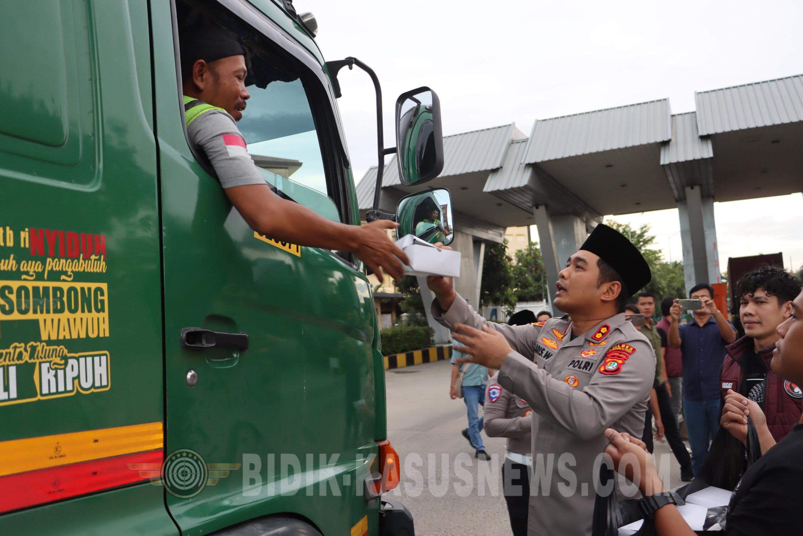 Selanjutnya, Kapolres bersama jajaran Pejabat Utama dan para jurnalis turun langsung ke depan Pos 1 Pelabuhan Tanjung Priok, untuk membagikan 100 paket takjil kepada para sopir, kernet, buruh, ojol, ojek pangkalan dan pengguna jasa di kawasan Pelabuhan Tanjung Priok. Dalam kesempatan tersebut, turut dibagikan brosur layanan Call Center 110 sebagai upaya sosialisasi pelayanan kepolisian kepada masyarakat apabila ada kejadian tindak pidana, atau kejadian lainnya yang membutuhkan kegadiran Polisi.